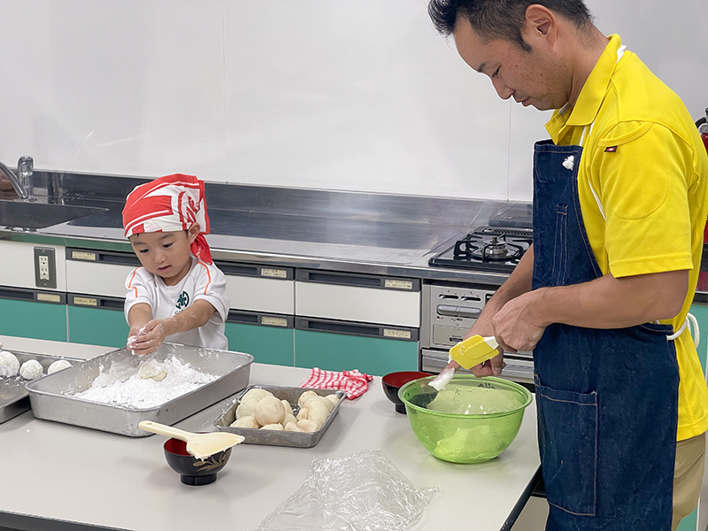 9月例会は、講師に青年部会員の丸岡家 竹内健人氏、中藤公民館 調理室をお借りして「家族でフルーツ大福づくり」でした。